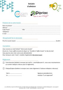 Pour obtenir la carte Cezam, veuillez compléter le bulletin d’adhésion ci-dessous et le transmettre à la mairie.
