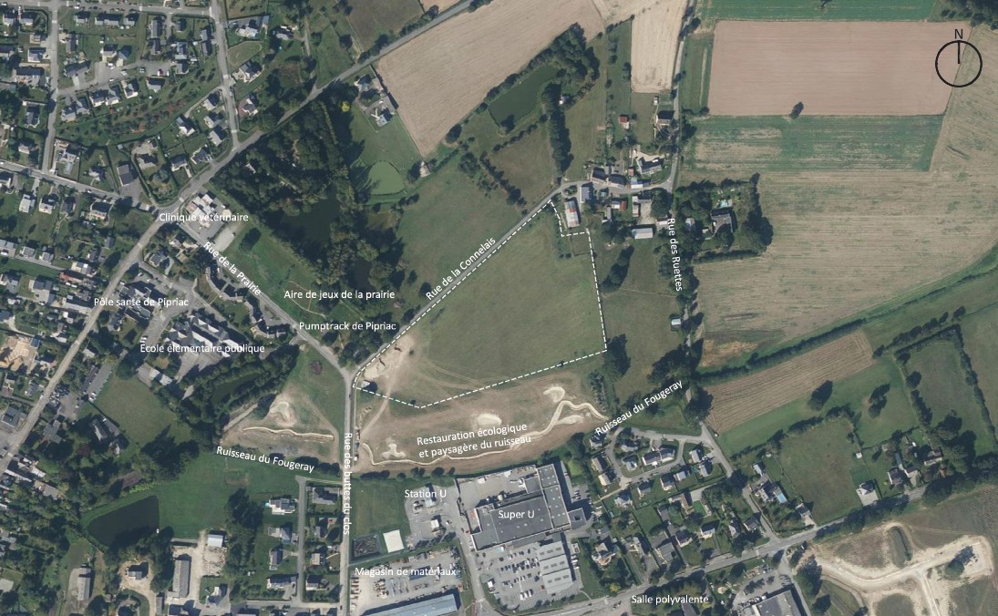 Le projet prévoit un aménagement laissant une large place au végétal, aux cheminements doux et à la gestion durable de l’eau, avec notamment des liaisons piétonnes le long du ruisseau du Fougeray.