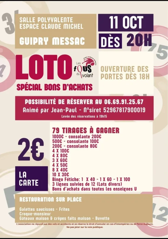 Loto du club de badminton de Pipriac-Guipry-Messac "spécial bons d'achat".