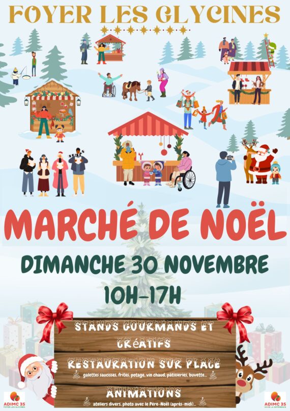 Le foyer les Glycines (ADIMC 35) organise son premier marché de Noël, de 10h à 17h, dans le parc extérieur et au sein de l'établissement.