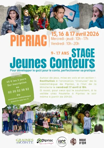 45 € les trois jours (repas du midi compris) – Inscription obligatoire à l’accueil de la médiathèque ou animation.mediatheque@mairie-pipriac.fr
