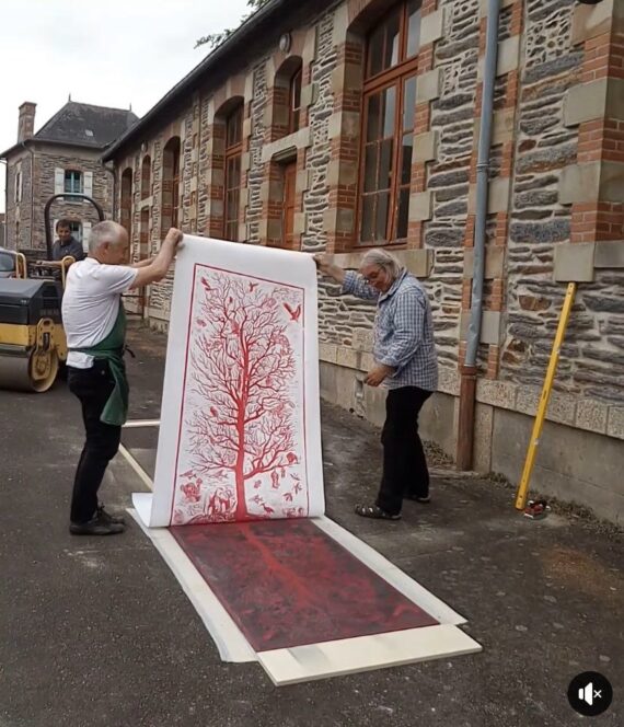 Tirages de linogravures XXL au rouleau compresseur. A ne pas manquer !