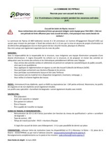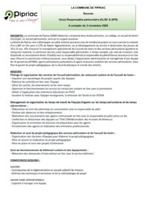 Offre d’emploi – Responsable périscolaire et ALSH – Octobre 2023