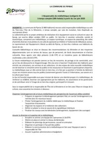 Offre d’emploi – agent d’accueil bibliothèque – Septembre 2023