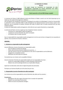 Offre d’emploi responsable gestion salles communales et suivi relations associations administrés – Octobre 2023
