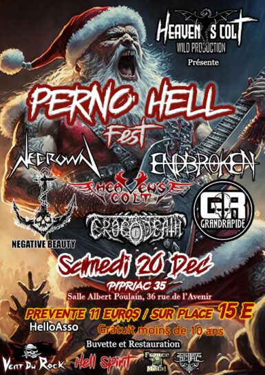 PERNO' HELL FEST Afin de fêter Noël comme il se doit, l'association Heaven's Colt - Wild Production a le plaisir de vous offrir un démoniaque festival…
