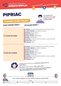 A Pipriac, les habitants ont accès au service de transport à la demande qui dessert deux arrêts dans la commune. Avec le transport sur réservation, chacun peut choisir son point d’arrivée, par exemple la gare de Redon ou une autre commune desservie.